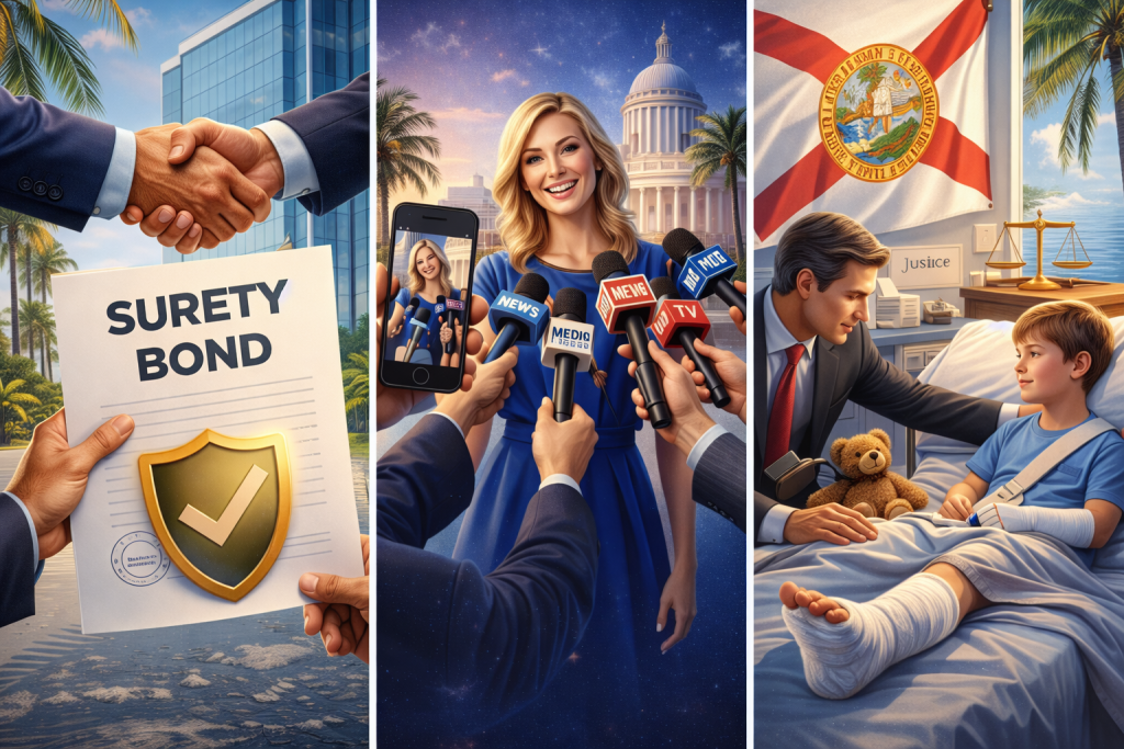 These three service areas—legal advocacy for children, construction surety bonds, and public relations marketing—represent distinct professional services supporting different needs within Florida’s business and civic community.
